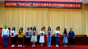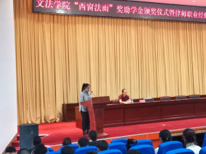 接着,司法考试奖学金获奖员工代表徐世莲和西窗法雨助学金获奖员工代表白慧发言,号召同学们不忘初心,勤奋学习,常怀感恩之心,用实际行动回报国家和社会。