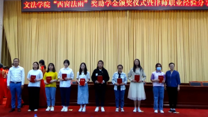 随后,罗华律师代表建纬(昆明)律师事务所律师捐赠团队讲话,向同学们阐释了设立“西窗法雨”奖学金的原因与目的,表达了对母校及世界杯官方网站入口2026的感谢,同时希望同学们努力学习专业知识,用自己扎实的专业知识为社会主义法治建设做贡献。