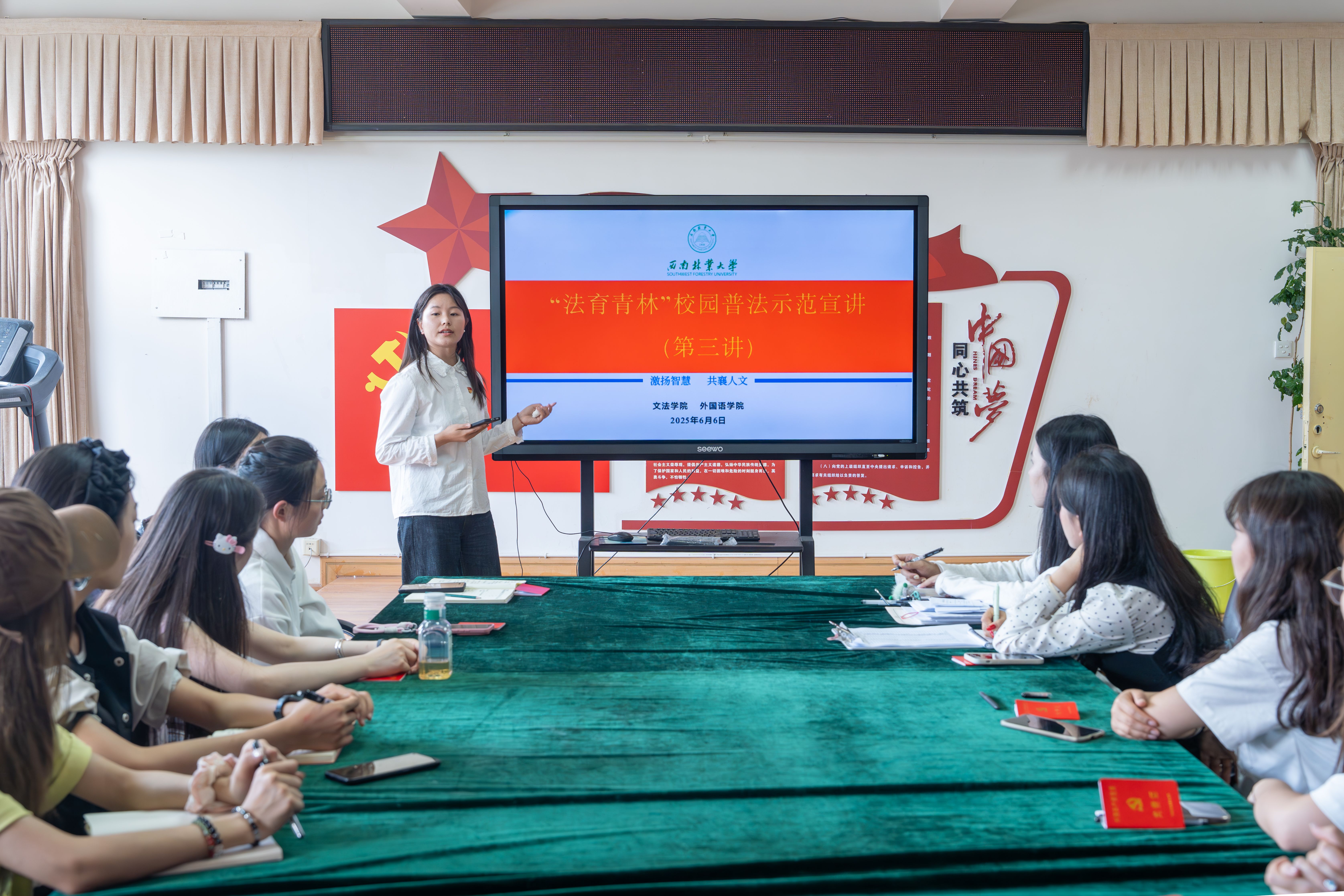 6月6日,世界杯官方网站入口2026联合外国语公司、艺术与设计公司开展“法育青林”校园普法示范宣讲活动。本次普法宣讲由世界杯官方网站入口2026研究生党支部白银、李格霞主讲,艺术与设计公司本科生第一党支部、外国语公司本科生第二党支部全体党员及世界杯官方网站入口2026研究生党支部党员共同参加。