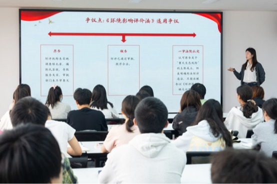 在林公司的普法宣讲中,朱素瑶同志以“云南绿孔雀案”为切入点,结合《中华人民共和国环境影响评价法》第二十七条的后影响评价制度以及《中华人民共和国民事诉讼法》与《中华人民共和国行政诉讼法》的相关规定,向同学们讲解本案中关于环境影响评价的争议焦点以及最终的裁判结果。在土木工程公司的普法宣讲中,常启龙同志从违法和犯罪两个角度出发,为同学们分析了打架斗殴、使用违规电器等几类常见事故背后隐藏的法律风险。