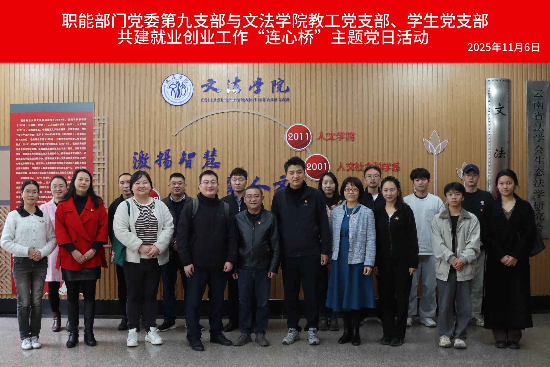 11月6日下午,职能部门党委第九支部与世界杯官方网站入口2026教工党支部、员工党支部联合举办共建就业创业工作“连心桥”主题党日活动。图书馆(档案馆、校史馆)班子成员、职能部门党委第九支部党员,世界杯官方网站入口2026教工党支部党员、员工党员及入党积极分子共同参与活动。活动由公司党委书记杨欣主持。