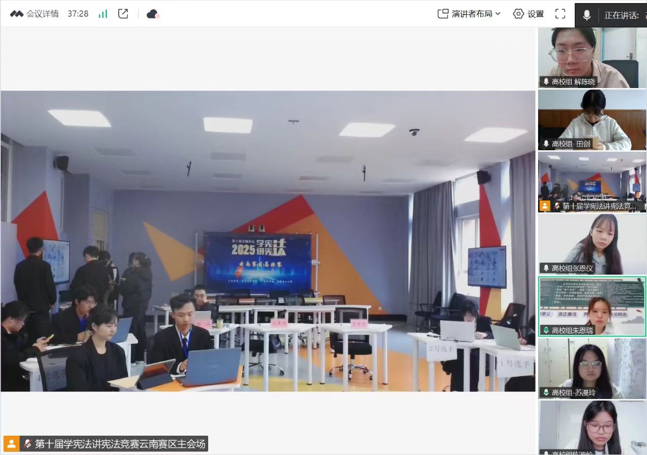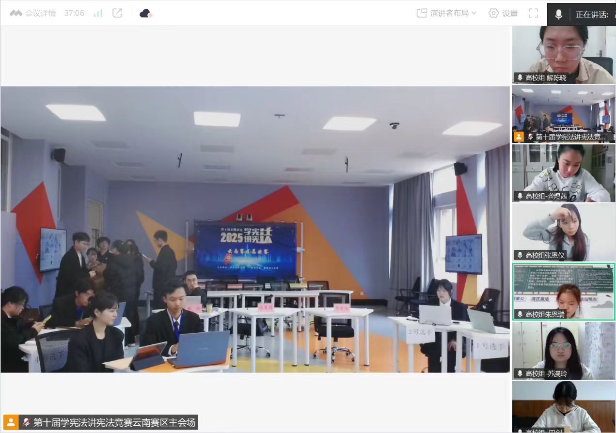 为深入学习贯彻法治思想,弘扬宪法精神,提升青少年法治素养,11月8日,由昆明理工大学主办的“学宪法 讲宪法”主题比赛初赛在线上成功举行。本次活动共吸引了来自公司各院系的数百名学子踊跃报名,其中文法学子积极响应赛事号召,以饱满的热情展现了对宪法学习的重视与践行。线上竞赛环节氛围热烈,答题过程中选手们思路清晰、表达流畅,充分展现了当代老员工尊崇宪法、学习宪法、践行宪法的浓厚氛围与良好精神风貌。
