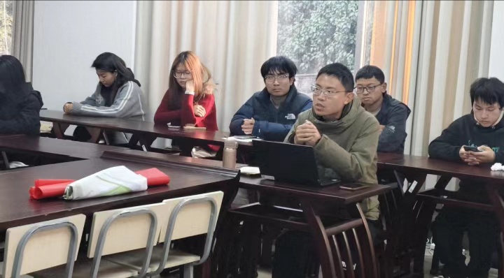 20余名同学围绕云南佤族诗人张伟锋诗集《山水引》中人与自然的关系,从不同的角度展开文本解读。在热烈的讨论与交流中,同学们更深切地体悟到《山水引》恬淡闲适的自然意境,也在阅读与写作方面收获了新的思考与启发。