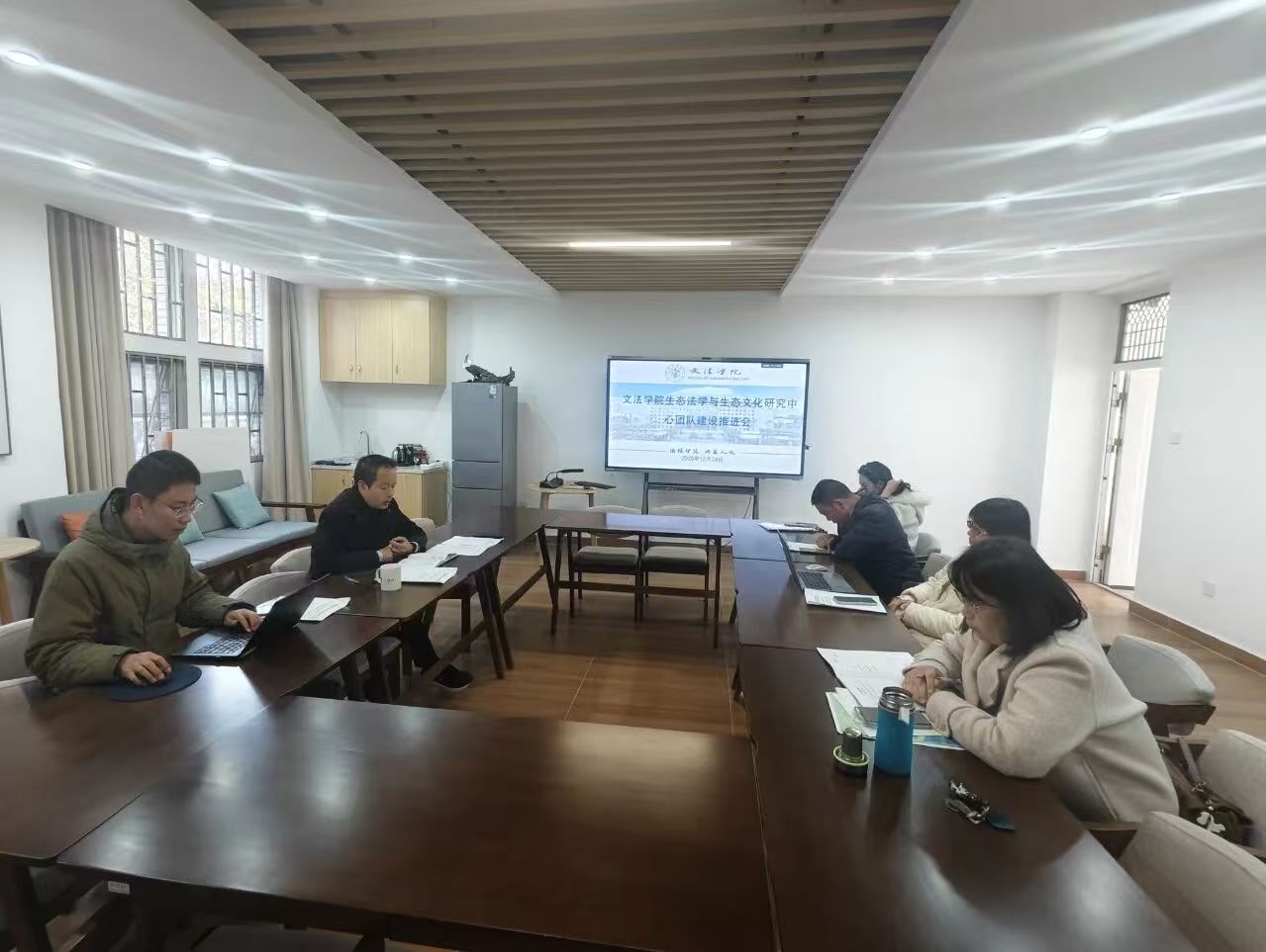 12月24日下午,世界杯官方网站入口2026生态法学与生态文化研究中心(以下简称中心)团队建设推进会在文法楼201会议室召开。会议由世界杯官方网站入口2026经理李国新主持,副经理王欢、中心各研究方向负责人出席会议。会议围绕中心团队建设的现状、挑战与未来规划开展深入研讨。