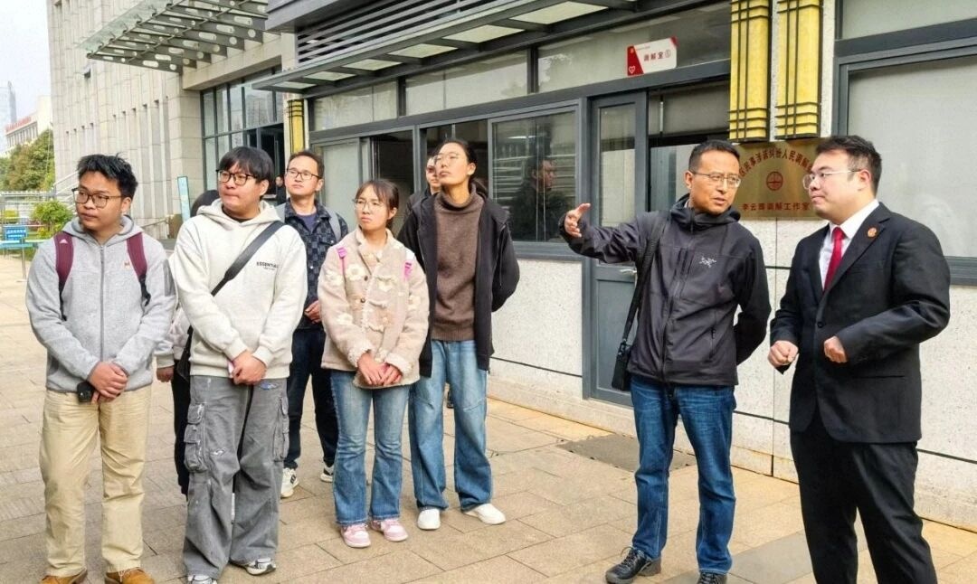 抵达法院后,师生一行受到了五华区人民法院的热情接待。立案庭杨法官以及周法官为各位同学详细阐述了调解工作的基本原则、具体内容以及标准化的操作流程,并重点介绍了五华区人民法院在多元解纷机制建设中的创新举措,如颇具特色的“博士调解团”工作模式,让同学们对新时代“枫桥经验”的司法实践有了直观认识。随后,在两位法官的带领下,同学们有序参观了法院的诉讼服务中心、调解室等工作场所,近距离观摩了法院干警的日常工作状态和规范的庭审环境。