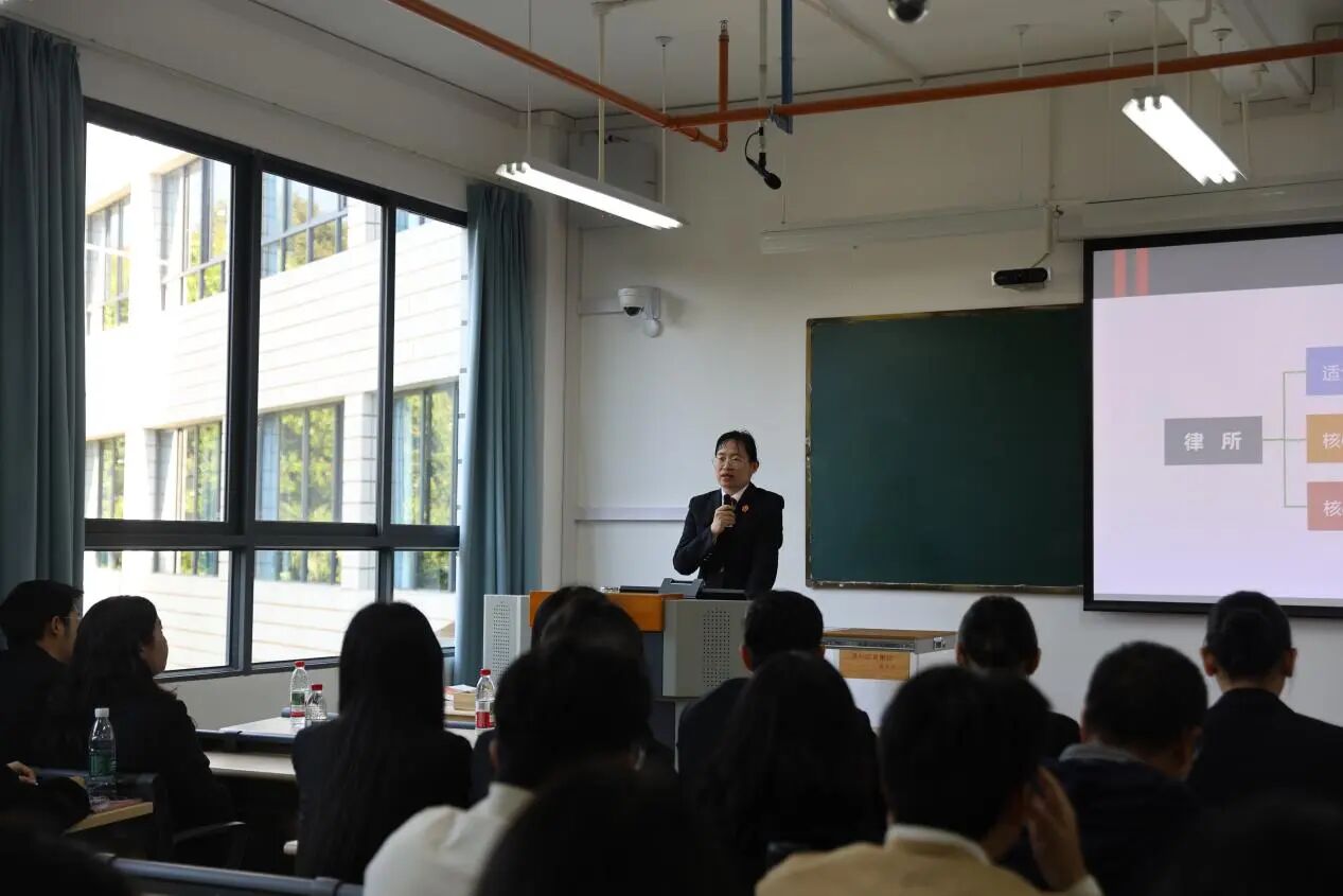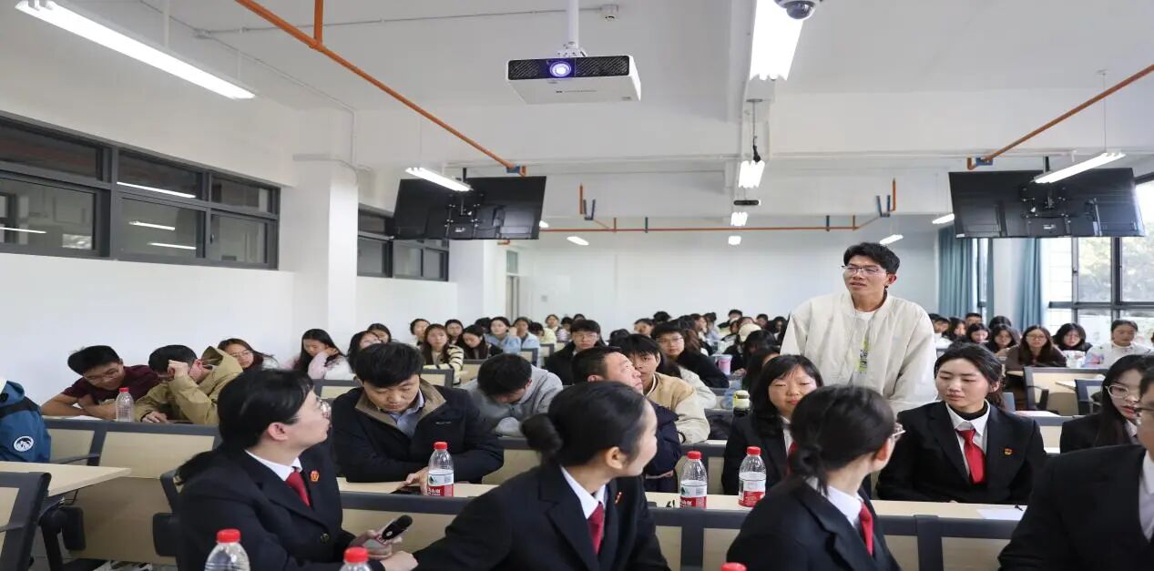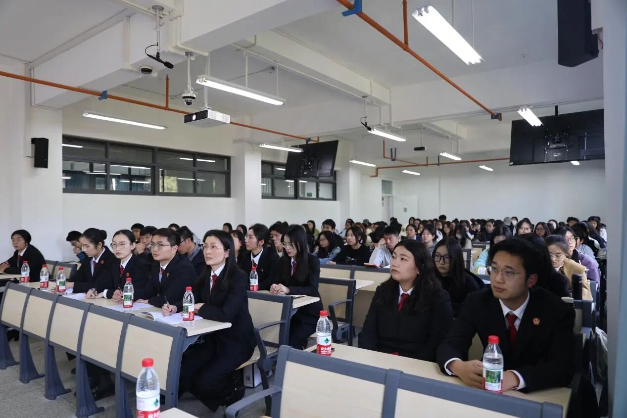 分享环节,干警们从自己的大学时光讲起,考研的纠结、择业的辗转、第一次开庭的紧张……真实的经历让同学们频频点头。到了互动环节,同学们更是“火力全开”:“符合报考法检岗位有哪些要求?”“考公考研如何选择?”“法院实习要啥条件?”干警们见招拆招,金句频出,耐心细致地一一解答。