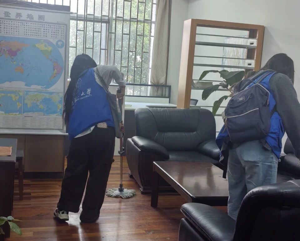 活动现场,志愿者们身着志愿马甲,手持扫帚、垃圾袋、抹布等工具,分成多个小组奔赴校园各区域。大家重点清理了教学楼周边、绿化带、校园步道的白色垃圾、枯枝落叶及隐藏在草丛中的杂物,同时细心擦拭公共座椅、宣传栏等设施。志愿者们分工协作、干劲十足,不放过任何卫生死角,用汗水换来了校园环境的洁净清爽,成为校园里一道靓丽的风景线。