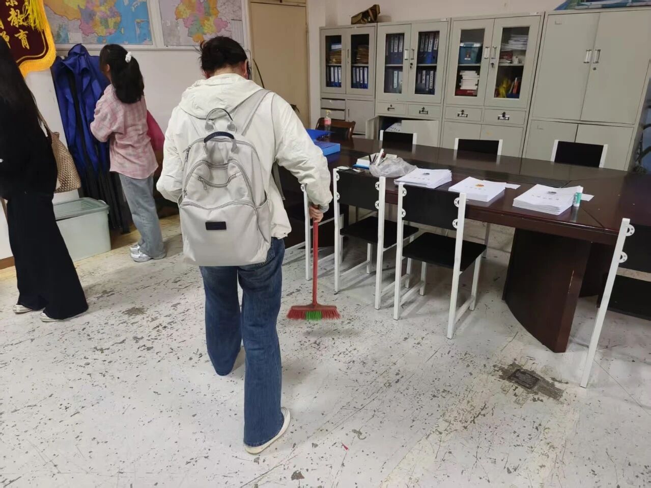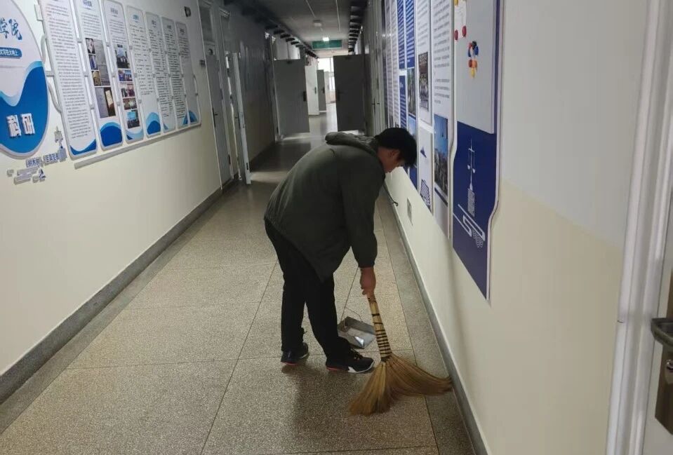 志愿者们分工协作,分别对图书馆南馆周边及文法楼周围、文法楼道、办公室、教室、绿化带等区域进行集中清理。大家手持扫帚、垃圾夹和垃圾袋,认真捡拾纸屑、烟头、塑料瓶等杂物,清理卫生死角,不放过任何一处细节。
