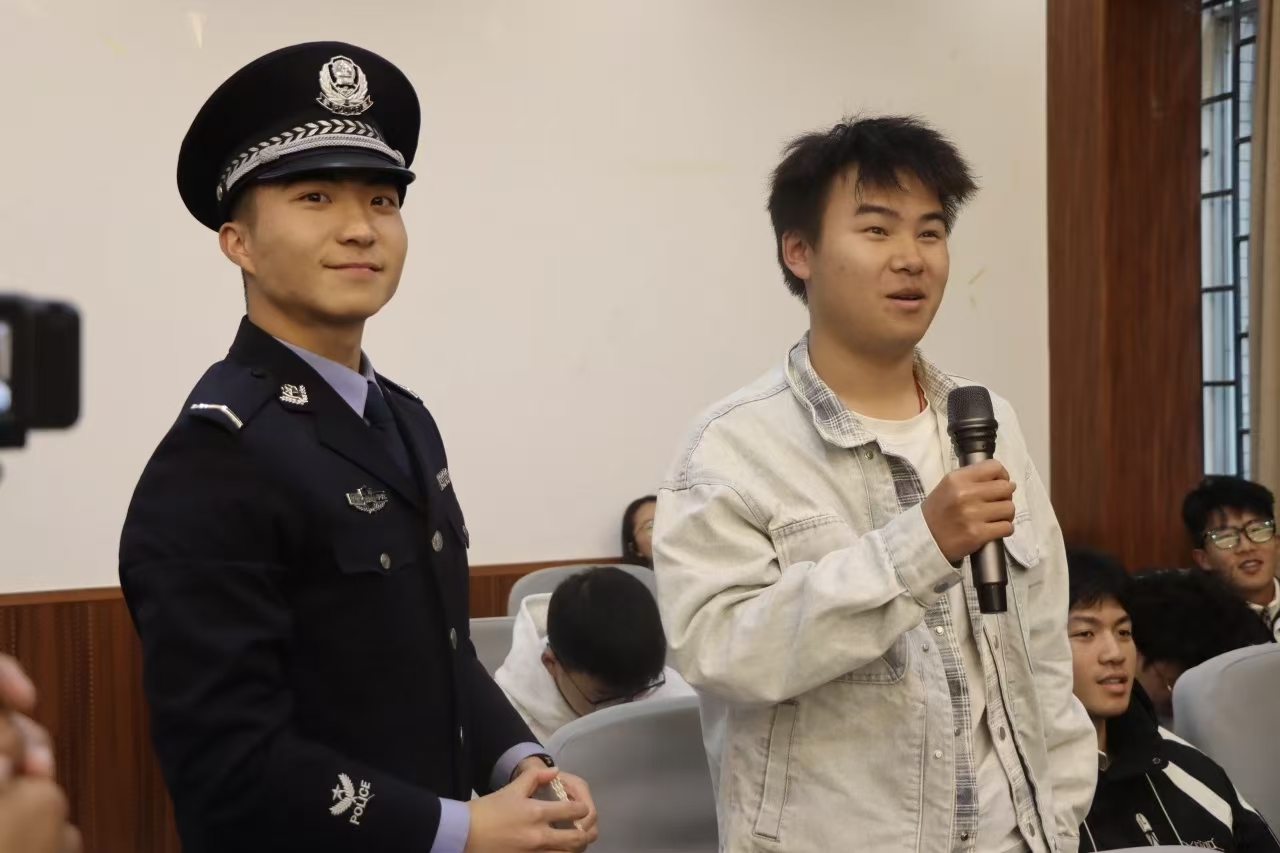 宣讲结束后,两校学子围绕宣讲内容展开了热烈讨论。同学们就如何识别新型诈骗陷阱、校园禁毒宣传的创新形式等话题各抒己见,在思维碰撞中深化了对安全知识的理解,也进一步凝聚了“平安校园,人人有责”的共识。